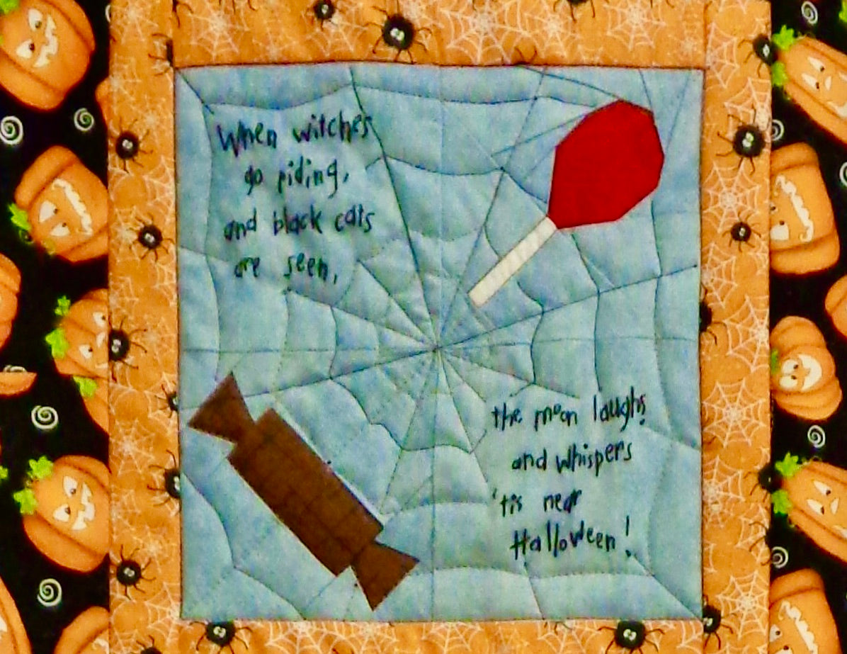 This Halloween Door Banner Pattern is perfect for paper piecing enthusiasts! With challenging and satisfying constructions, you will add a witch, bat, pumpkin, and cat to your door for a spooky decor piece. 14" x 50"